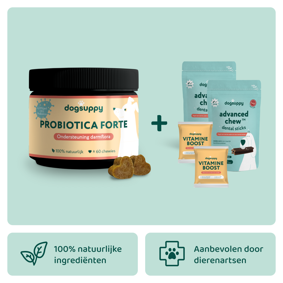 • 1x Probiotica Forte (met kip, met zalm of zonder kip/vlees/vis, 60 snoepjes)