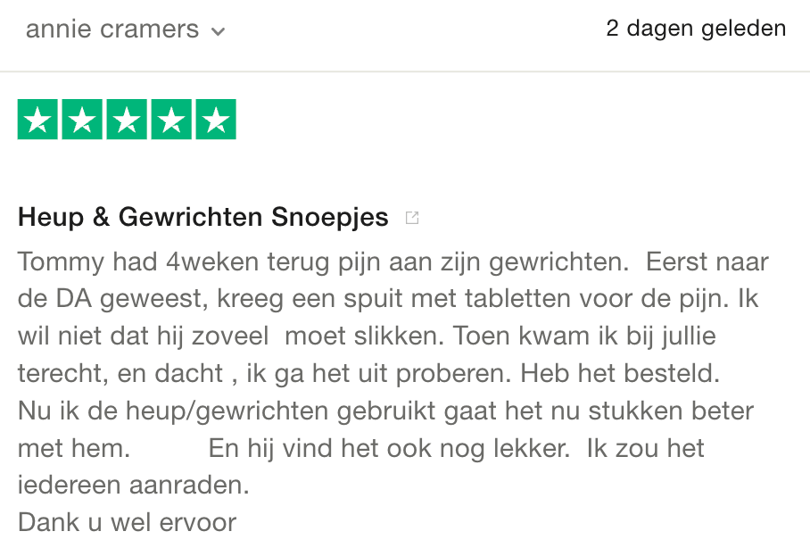 Het resultaat? Binnen 6 weken zien baasjes hun hond weer springen, wandelen en spelen alsof hij jaren jonger is.
