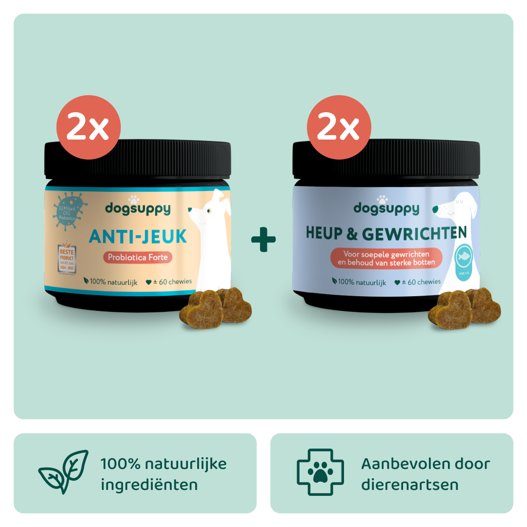 De ingrediënten in DogSuppy-producten zijn zorgvuldig gekozen en in optimale hoeveelheden toegevoegd om ondersteuning te bieden. Houd er echter rekening mee dat natuurlijke ingrediënten het welzijn van je hond van binnenuit ondersteunen, waardoor het even kan duren voordat je zichtbare veranderingen opmerkt.