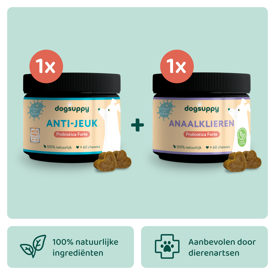 Heeft je hond last van jeuk en gaat hij/zij sleetjerijden? Dan is dit de perfecte bundel om jouw hond te ondersteunen. De krachtige combinatie van onze 2 bestsellers Anti-Jeuk en Anaalklieren zorgt voor ondersteuning, comfort en een blije, ontspannen hond.
