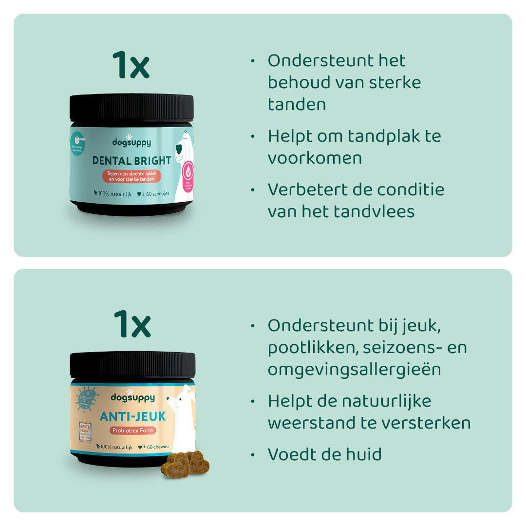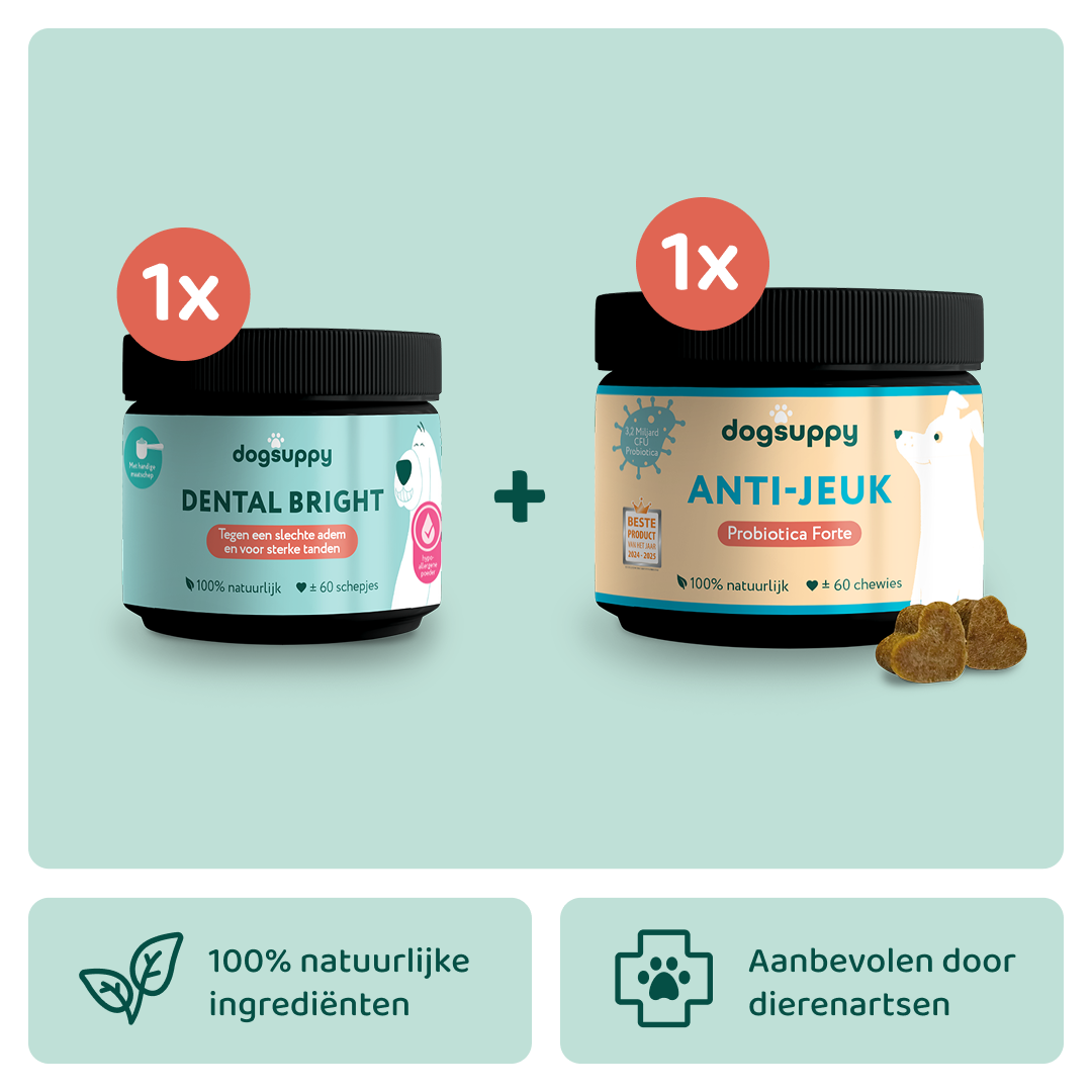 De ingrediënten in DogSuppy-producten zijn zorgvuldig gekozen en in optimale hoeveelheden toegevoegd om ondersteuning te bieden. Houd er echter rekening mee dat natuurlijke ingrediënten het welzijn van je hond van binnenuit ondersteunen, waardoor het even kan duren voordat je zichtbare veranderingen opmerkt.
