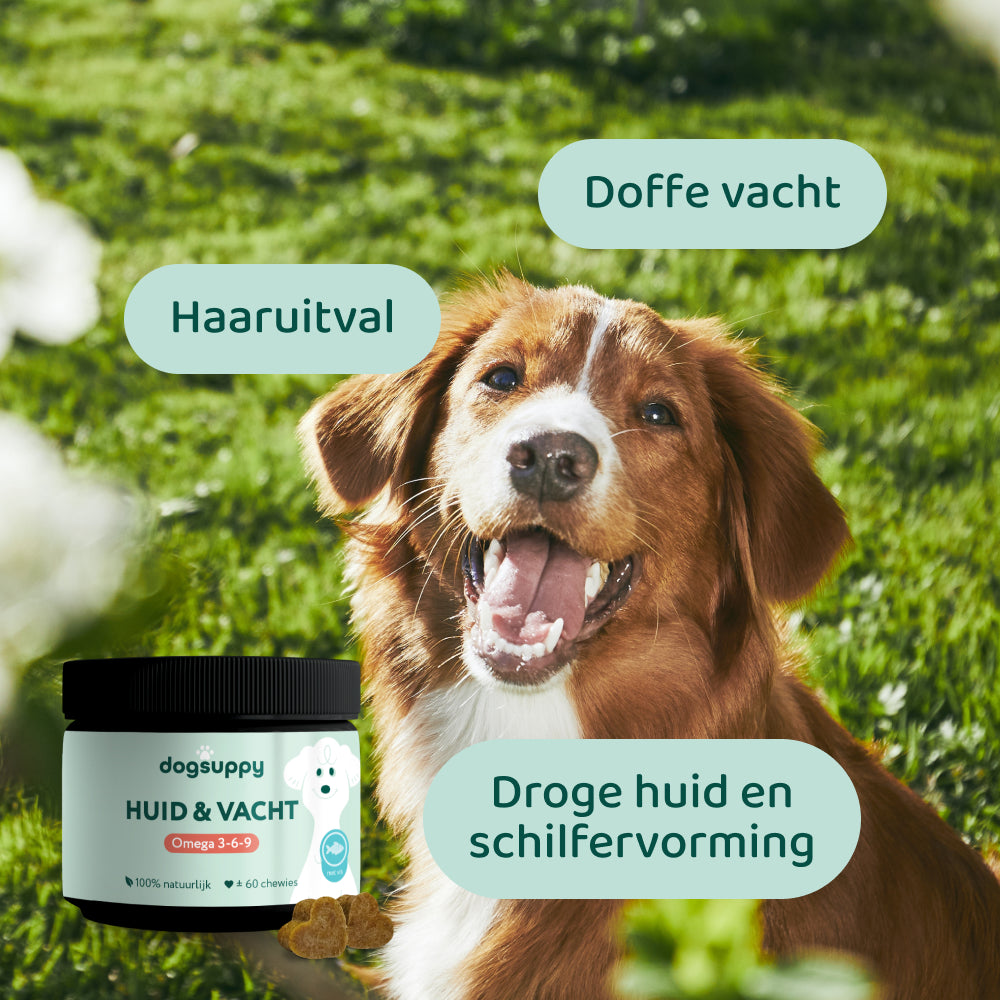 De ingrediënten in DogSuppy-producten zijn zorgvuldig gekozen en in optimale hoeveelheden toegevoegd om ondersteuning te bieden. Houd er echter rekening mee dat natuurlijke ingrediënten het welzijn van je hond van binnenuit ondersteunen, waardoor het even kan duren voordat je zichtbare veranderingen opmerkt.