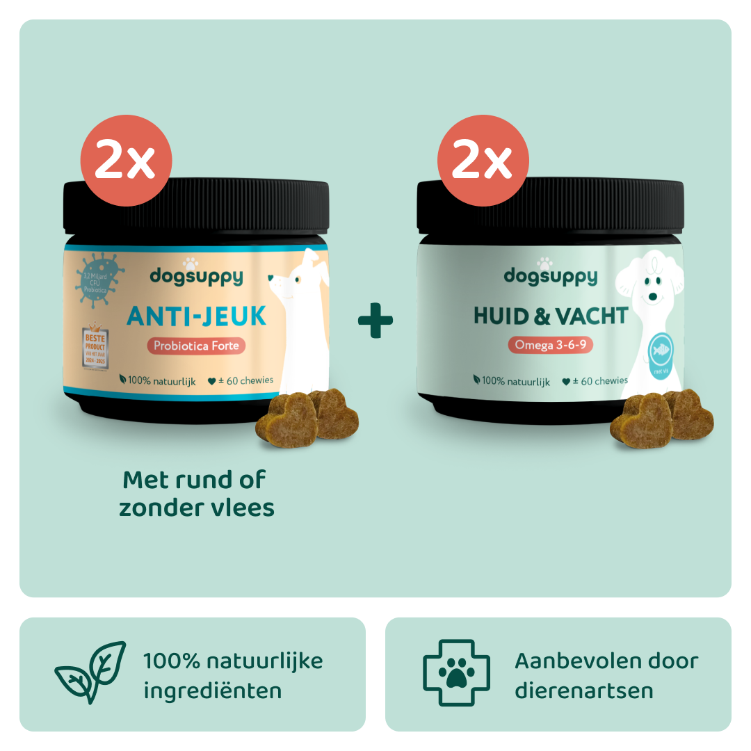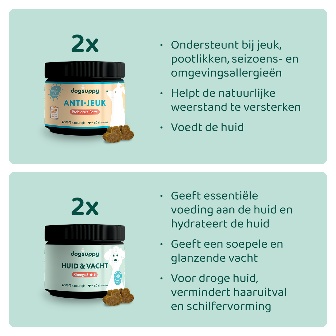 • 2x Anti-Jeuk (met of zonder vlees, 2x 60 snoepjes)