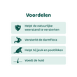 Vermindert jeuk en ondersteunt de huid bij allergieën, krabben en irritaties.