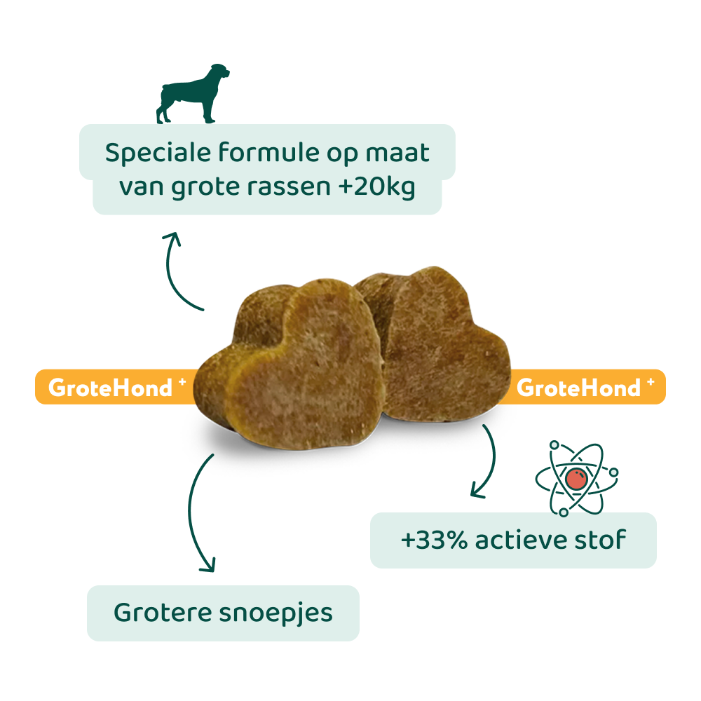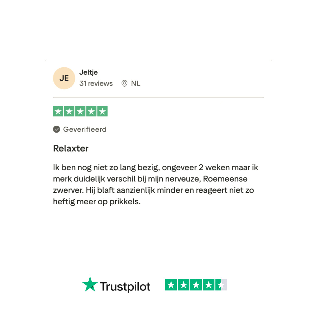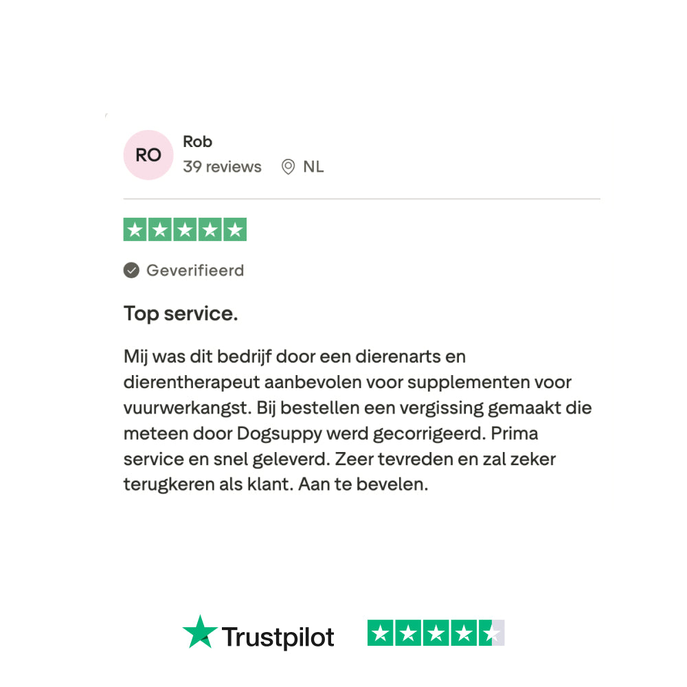 Dit supplement vervangt geen medisch advies van een dierenarts of hondengedragsdeskundige.