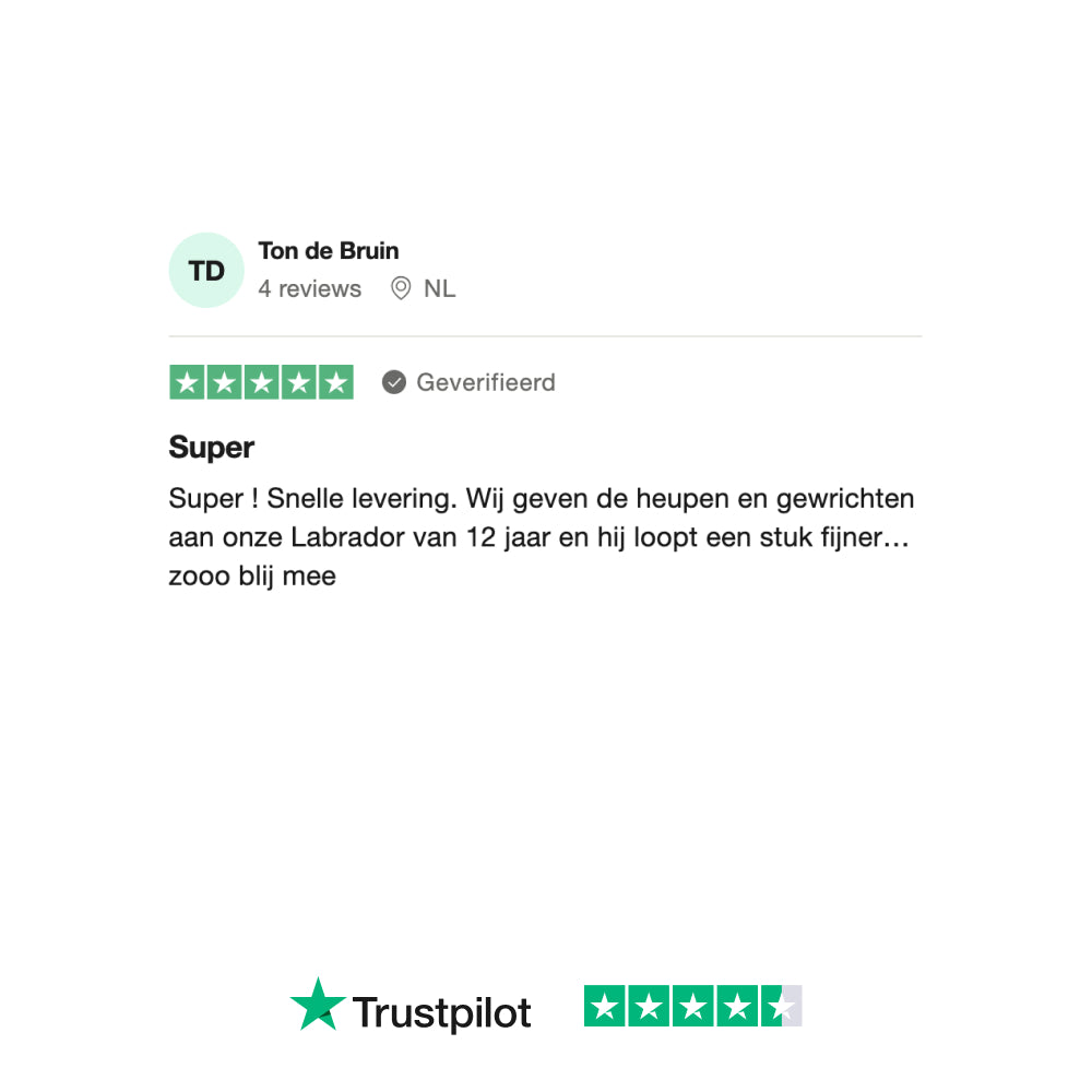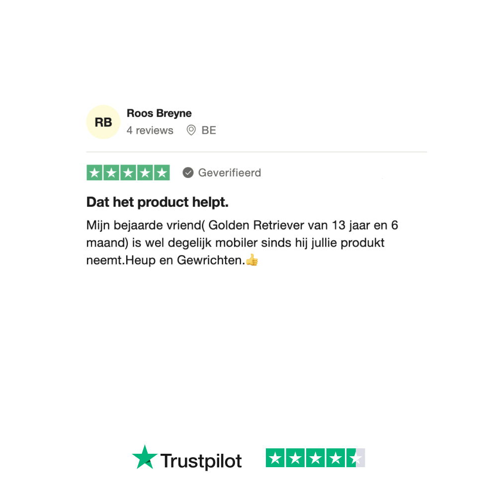 Hoewel veel van onze klanten aangeven dat onze supplementen zeer effectief zijn, weten we dat de resultaten kunnen variëren. Het effect kan verschillen per hond en situatie.
