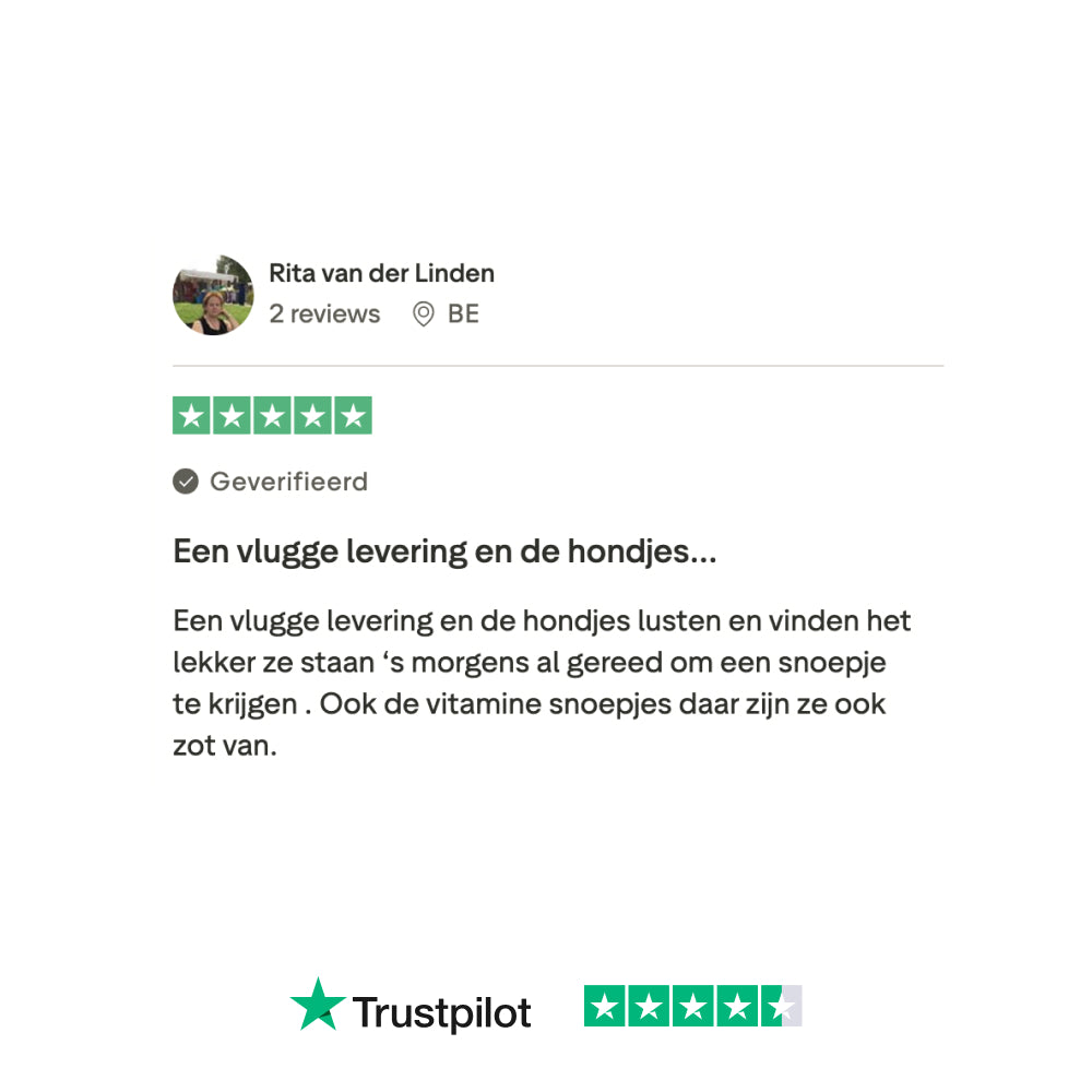 Ja, de Vitamin Boost snacks is volledig veilig voor je hond. Het is ontwikkeld door nutritionele experts en gemaakt met hoogwaardige, natuurlijke ingrediënten. Daarnaast bevat het geen kunstmatige toevoegingen of vulstoffen, en voldoet het aan de strenge Europese regelgeving.
