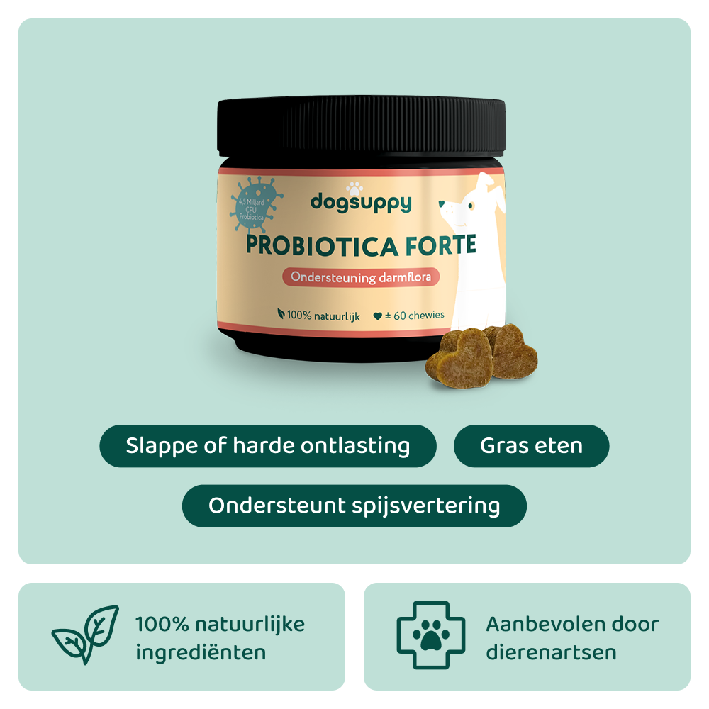 Bij DogSuppy kiezen we voor een combinatie van 3 verschillende stammen probiotica.