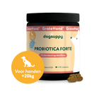De reden voor het eten van gras is meestal te herleiden tot een ongezond darmmicrobioom, waarbij er een disbalans is tussen de 'slechte' en 'goede' bacteriën. Je hond probeert dit te compenseren door gras te eten, wat kan leiden tot symptomen zoals hoofdschudden en andere tekenen van ongemak. Door het darmmicrobioom te ondersteunen met Probiotica Forte chewy's, zal dit waarschijnlijk leiden tot een afname van het gras eten.