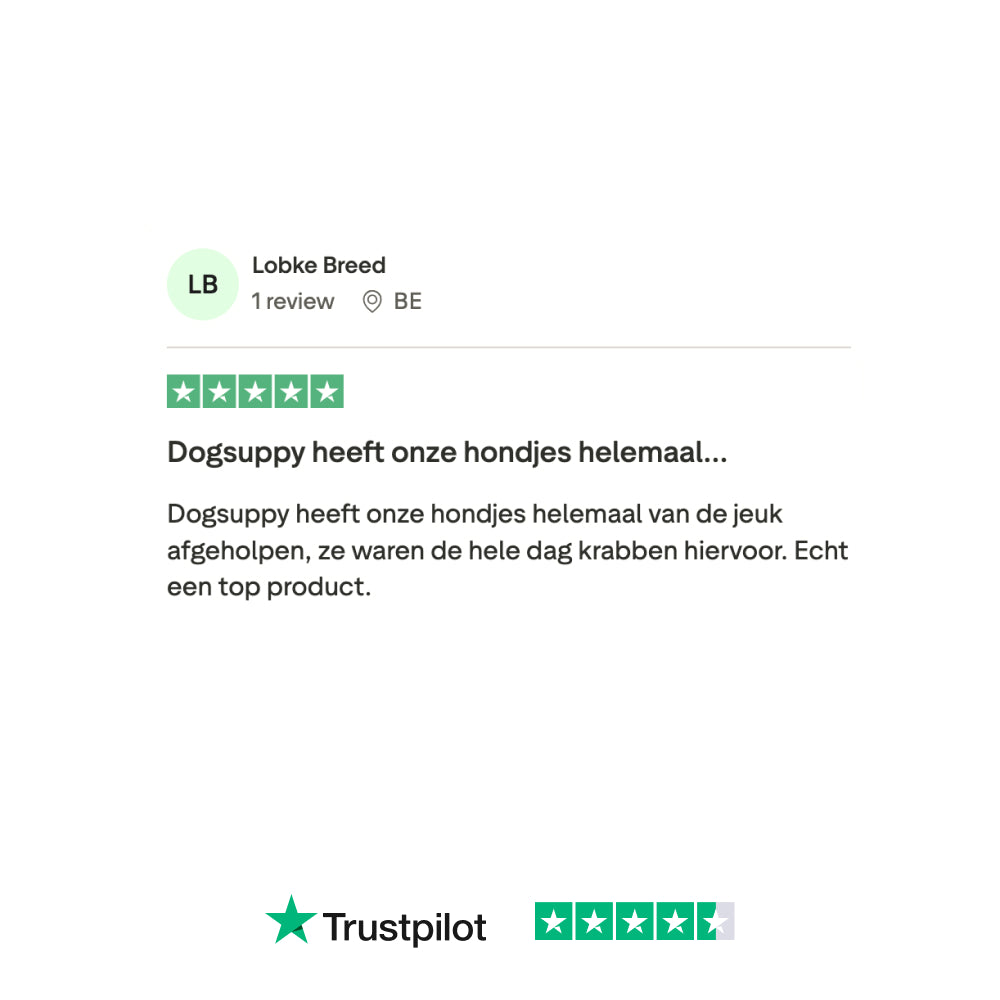 De ingrediënten in DogSuppy-producten zijn zorgvuldig gekozen en in optimale hoeveelheden toegevoegd om ondersteuning te bieden. Houd er echter rekening mee dat natuurlijke ingrediënten het welzijn van je hond van binnenuit ondersteunen, waardoor het even kan duren voordat je zichtbare veranderingen opmerkt.